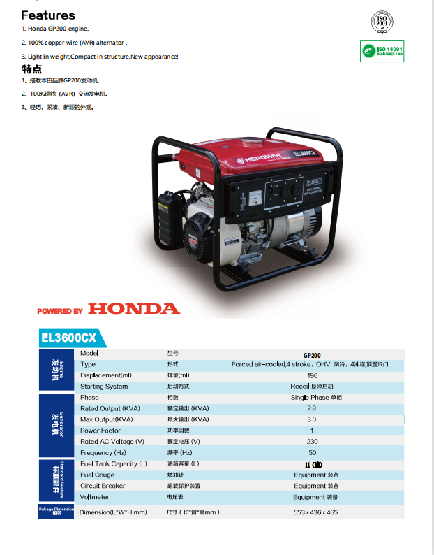 信息名稱: 本田發(fā)電機(jī) EL3600CX