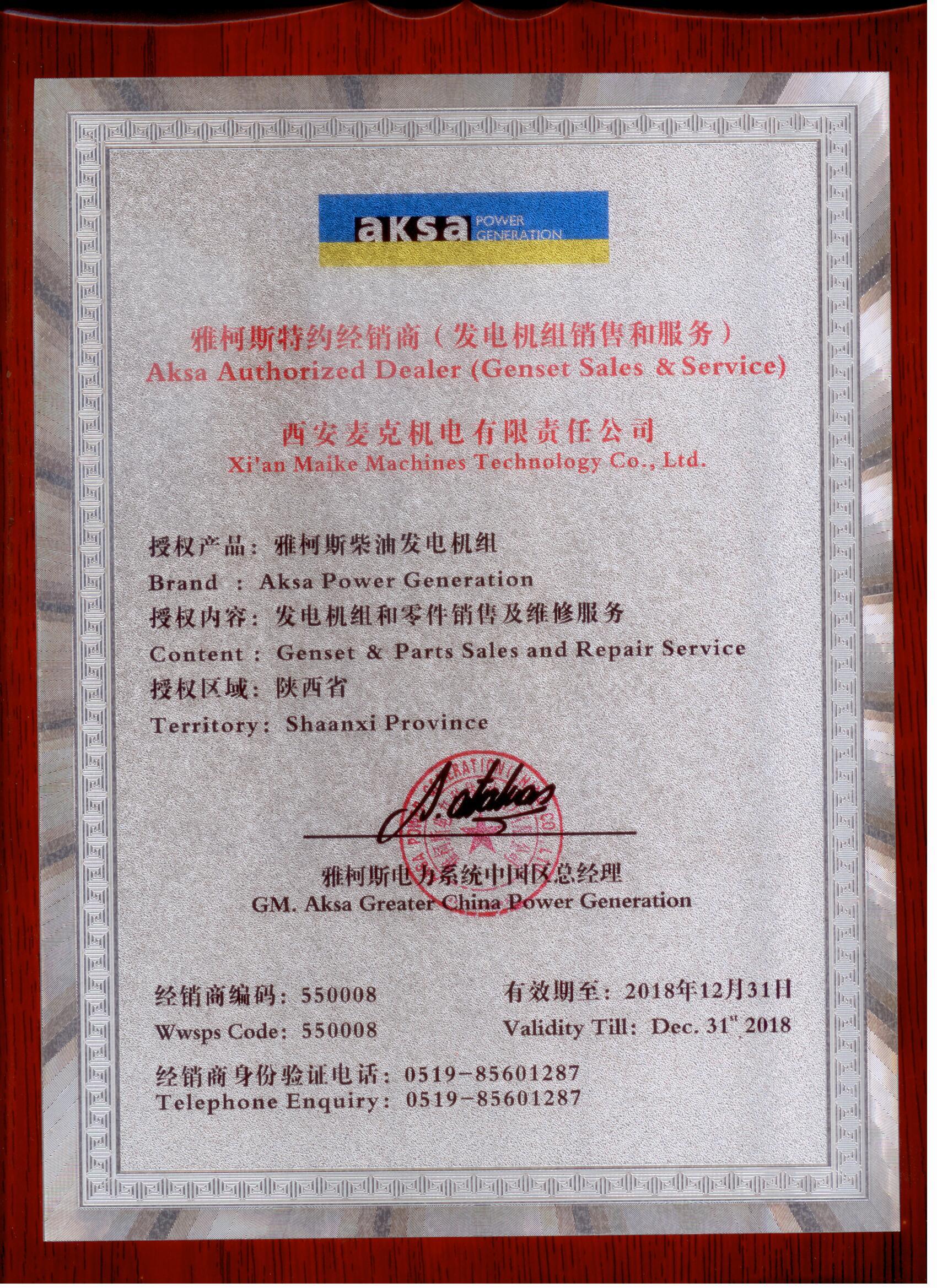 2018年成功續(xù)簽雅柯斯柴油發(fā)電機(jī)組陜西特約代理銷售及服務(wù)商