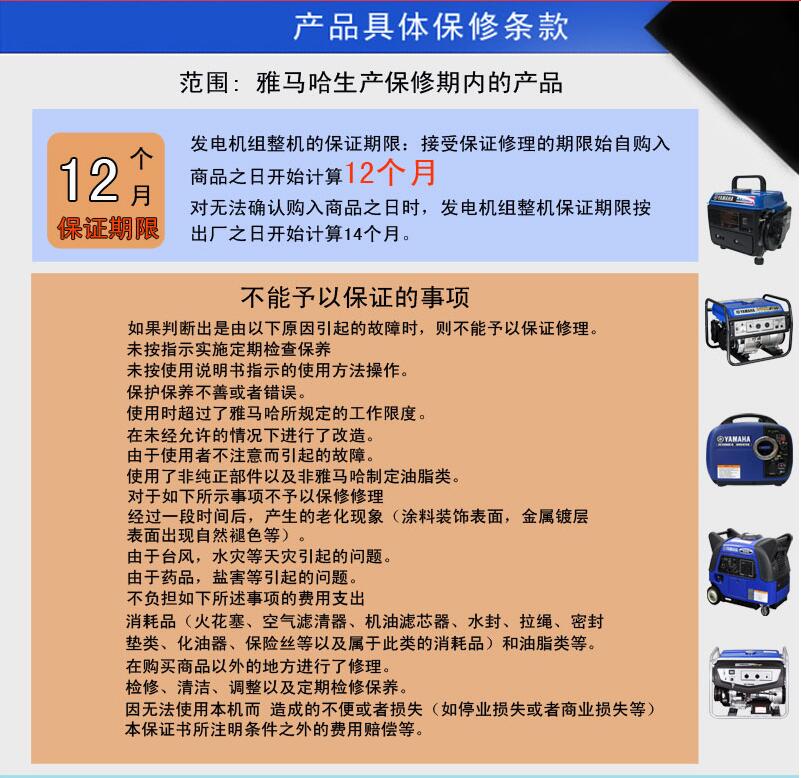 日本雅馬哈發(fā)電機(jī)保修條款及使用注意事項(xiàng):