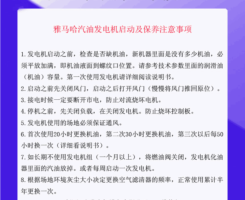 日本雅馬哈發(fā)電機(jī)使用注意事項(xiàng):
